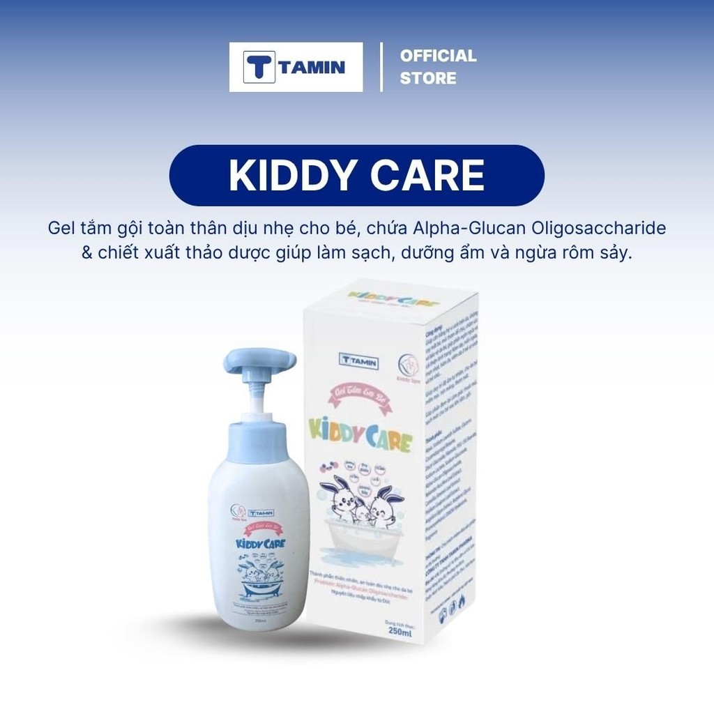 Kiddy Care là gel tắm gội toàn thân dịu nhẹ cho bé, chứa Alpha-Glucan Oligosaccharide & chiết xuất thảo dược giúp làm sạch, dưỡng ẩm và ngừa rôm sảy, mẩn ngứa hiệu quả. Không cay mắt, an toàn cho da nhạy cảm.