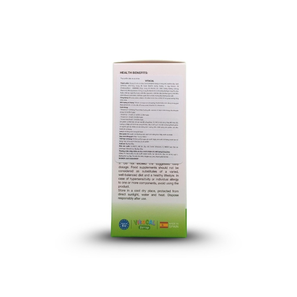 Lưu ý:- Không dùng cho người bị tăng calci huyết, tăng calci niệu, người bị sỏi thận, sỏi tiết niệu. – Để xa tầm tay trẻ em dưới 3 tuổi.- Không dùng quá liều khuyên dùng hàng ngày.- Thực phẩm bảo vệ sức khỏe không nên được coi là sản phẩm thay thế cho một chế độ ăn uống đa dạng, cân bằng và lối sống lành mạnh.- Trong trường hợp quá mẫn cảm hoặc dị ứng với một hoặc nhiều thành phần, hãy tránh sử dụng sản phẩm.- Không dùng cho người mẫn cảm, kiêng kỵ với bất kỳ thành phần nào của sản phẩm.- Người đang dùng thuốc, điều trị bệnh cần tham khảo ý kiến chuyên gia y tế trước khi dùng. – Thực phẩm này không phải là thuốc, không có tác dụng thay thế thuốc chữa bệnh.- Vứt bỏ bao bì đúng nơi sau khi sử dụng.